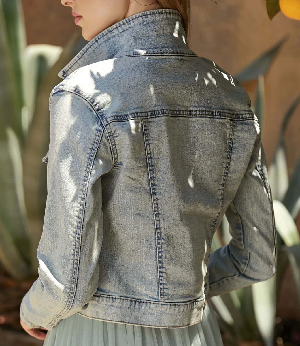 Diese schöne Jacke ist aus Jeans gefertigt, perfekt für die moderne Braut.