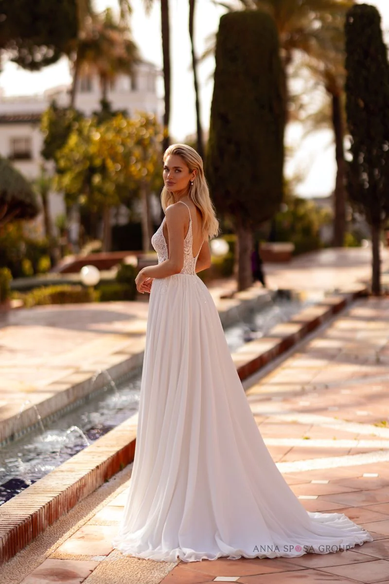 Perfekt für: für eine Hochzeit im Boho-Stil, eine klassische Hochzeitszeremonie, für eine intime Hochzeit, als zweites Hochzeitskleid für einen informellen Teil der Feier.