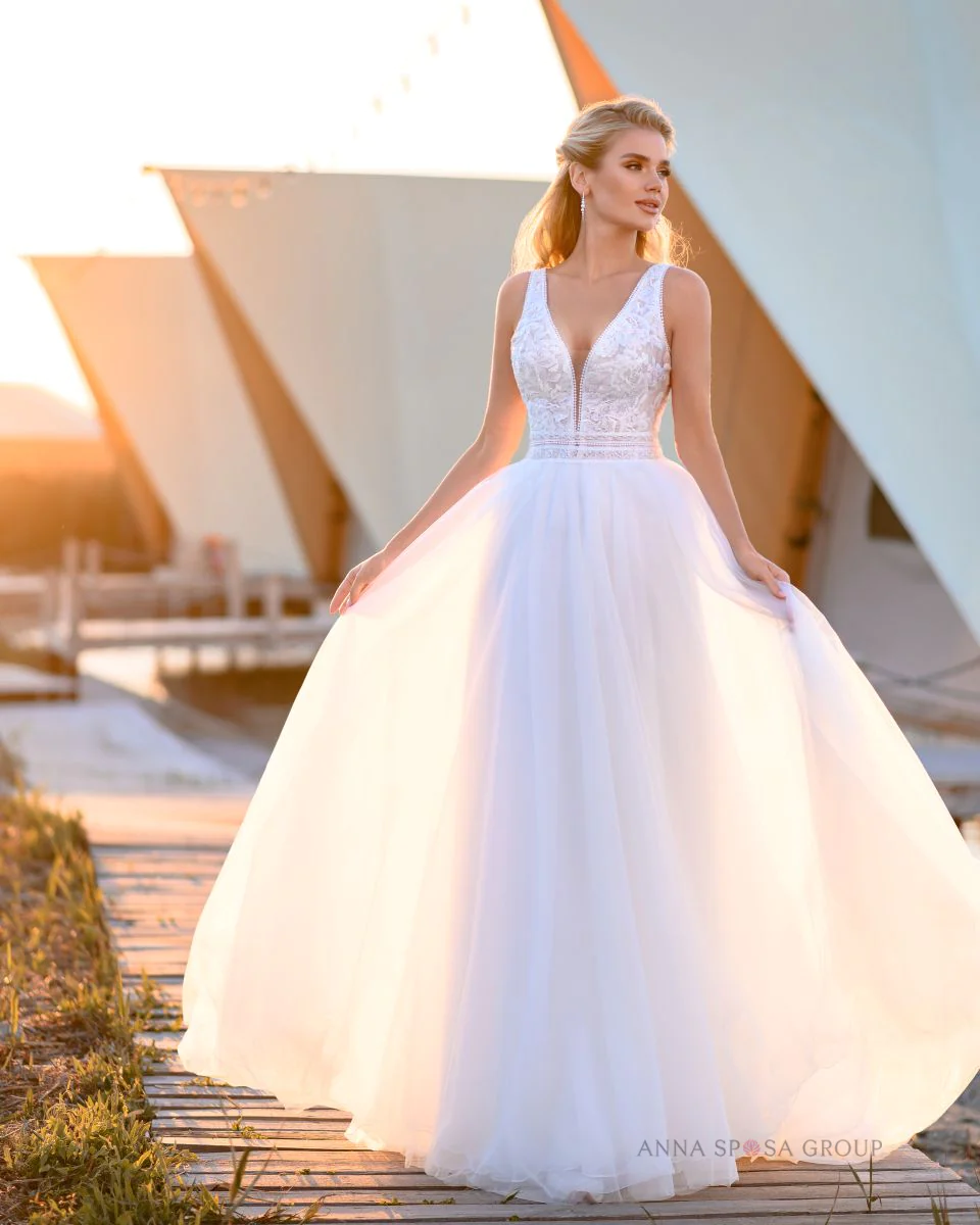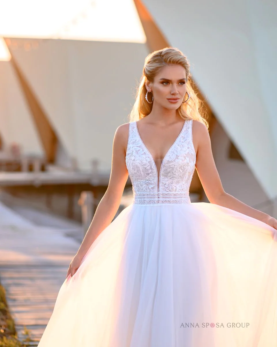Brautkleidstil: A-Silhouette mit breiten Trägern.